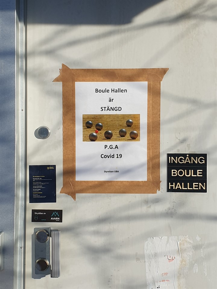 Uppsala kommun meddelade idag (23/1) att alla idrottshallar fortfarande är stängda för personer äldre än 15 år. Uppsala Bouleallians har därför beslutat att fortsatt hålla hallen stängd för spel och träning. På Svenska Bouleförbundets hemsida kan man, om man klickar på avsnittet "Nu gäller nya nationella råd" läsa följande uppmaning: "Fortfarande ska inga aktiviteter genomföras inomhus och man bör inte träna tillsammans med andra än dem man delar hushåll med." När restriktionerna ändras på ett sådant sätt, att boulehallen åter kan öppnas för spel och träning, kommer Uppsala Bouleallians att meddela detta genom utskick till kontaktpersonerna. Sprid denna information till era medlemmar. Styrelsen för Uppsala Bouleallians